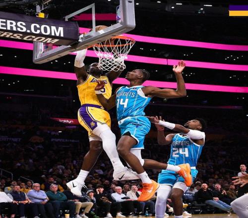 最后一节开始后两队拉锯几个回合,拉拉维亚三分命中,勒布朗快攻得手,一波7-2的反击高潮让湖人队追至103-109。黄蜂队暂停后立即反攻,鲍尔又中三分率队连得9分,他们再次领先两位数。东契奇三分止血,黄蜂队外线保持手感,鲍尔和布里奇斯各中三分,第四节还有5分30秒时黄蜂队以123-106领先。勒布朗突破打进,米勒中投得分,勒布朗打3分率队又追5分,第四节还有3分20秒时湖人队以115-127落后。
